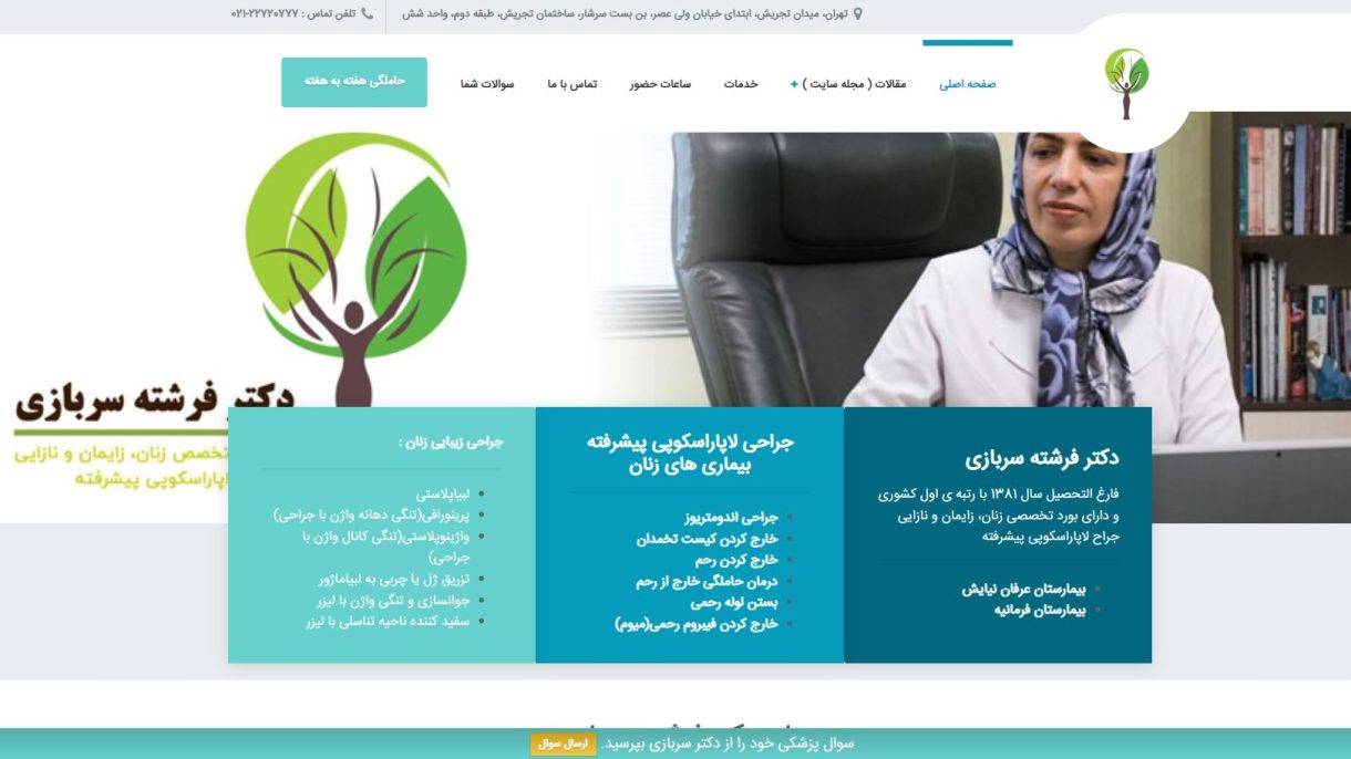 دکتر فرشته سربازی متخصص زنان و زایمان هستند که در تجریش مطب دارند. این وب سایت را در سال 1394 طراح کردم و سئو این وب سایت را نیز انجام دادم.